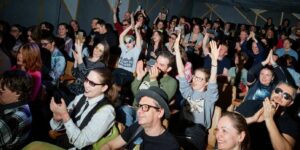 👽 До дискотеки дожили не все. В душном зале театра время становится понятием относительным, а выступающие быстро сменяют друг друга. Под гимн Беларуси на сцене разыгрывают дакикамуры с изображением Александра Лукашенко и мумифицированного Алешеньки. Известная уральская поэтесса Александра Аксенова читает стихи про межпланетный «Тиндер» и посвящение Татьяне Просвириной — «родной матери всех внеземных детей».