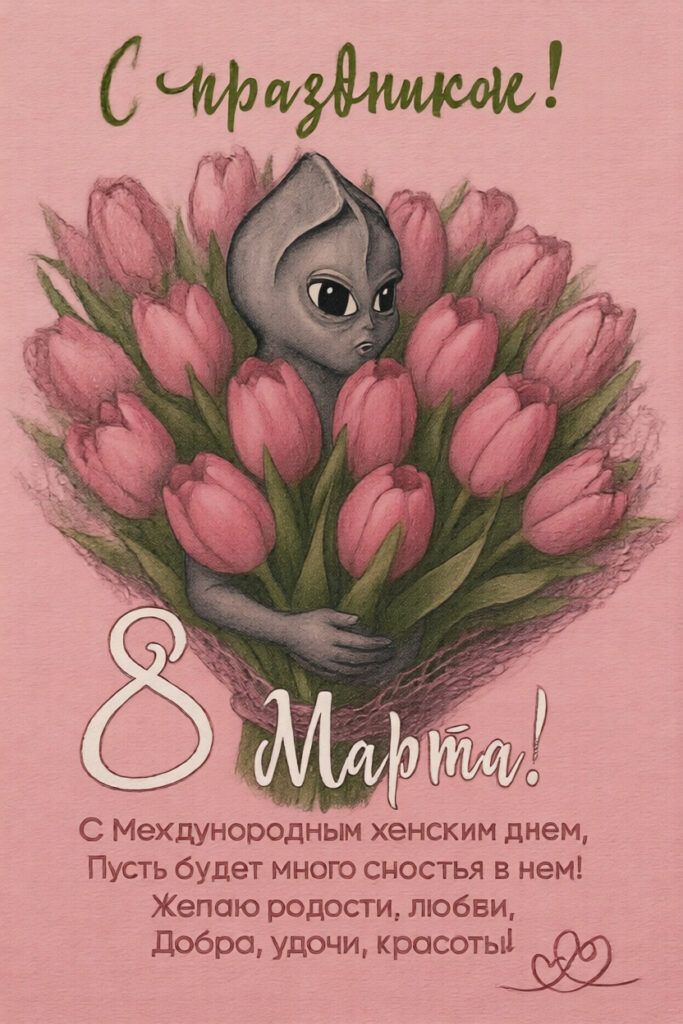 Лёха (Кыштымский) в вашу честь написал и выслал через нас небольшой поздравительный стих для девчонок, со свойственными его инопланетному разуму специфическими ошибками в русском языке 👽